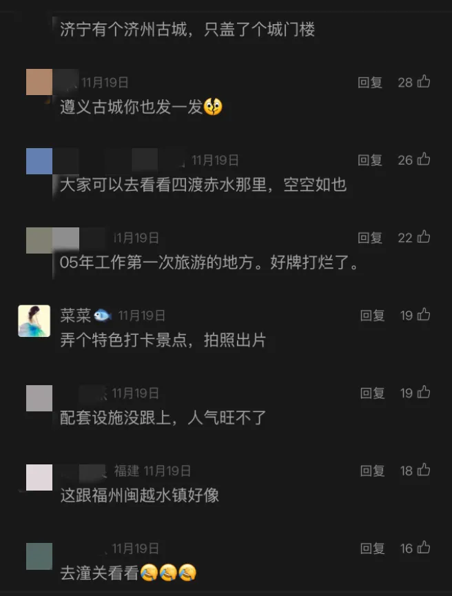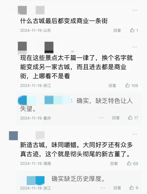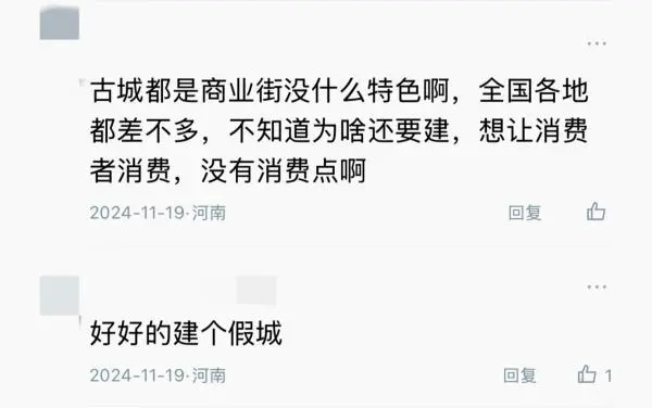在澎湃新闻此前报道的评论中,不少网友“点名”了多个存在类似问题的“古城”。