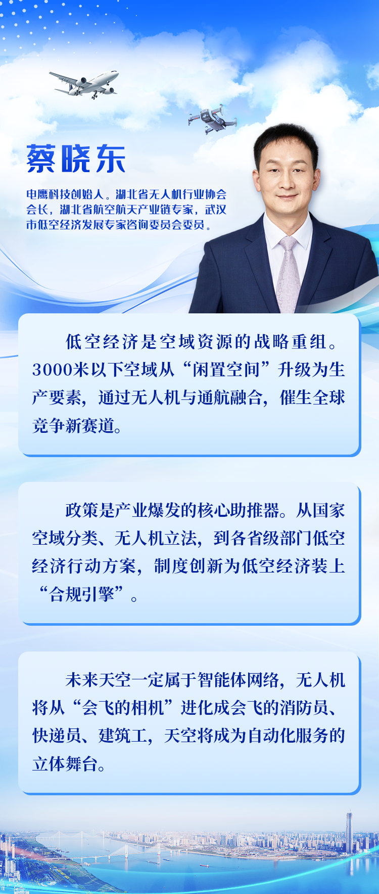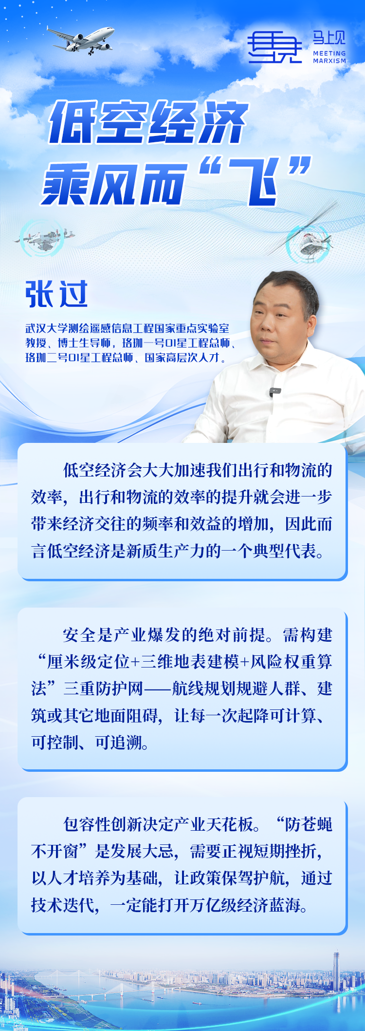 随着科技的不断进步和无人机技术的发展,低空经济作为一种新兴的商业模式,逐渐走进了公众视野。低空经济不仅是空中出行的未来趋势,更是在多个行业领域内带来巨大变革的重要推动力。那么,什么是低空经济?它是如何运作的?为各行各业带来了哪些潜在机遇?在湖北省委网信办的指导下,荆楚网(湖北日报网)联合武汉大学马克思主义学院“马上见”团队,邀请武汉大学测绘遥感信息工程国家重点实验室教授、博士生导师张过,电鹰科技创始人、湖北省无人机行业协会会长蔡晓东,一起探讨中国低空经济的发展趋势。