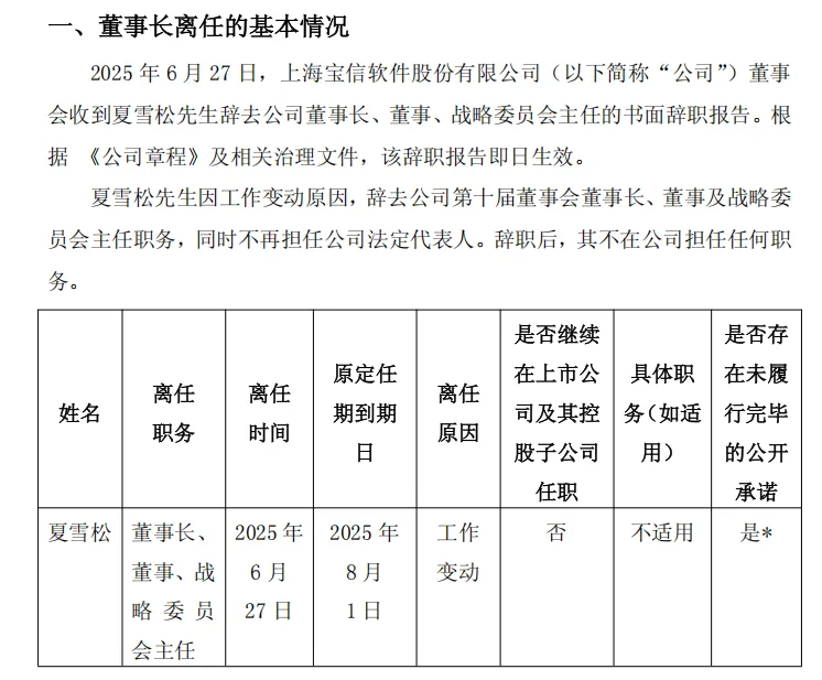 任期即将届满前,宝信软件董事长夏雪松辞职。