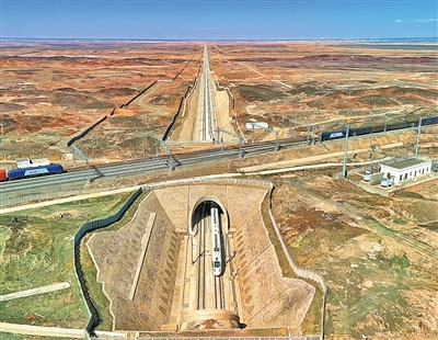 如何应对?高铁建设者探索出了应对风沙灾害的“三大法宝”:路基挡风墙、桥梁挡风屏和防风明洞。