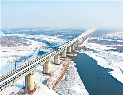 沿着哈大高铁线,动车组列车在皑皑白雪中行进。赵旭摄