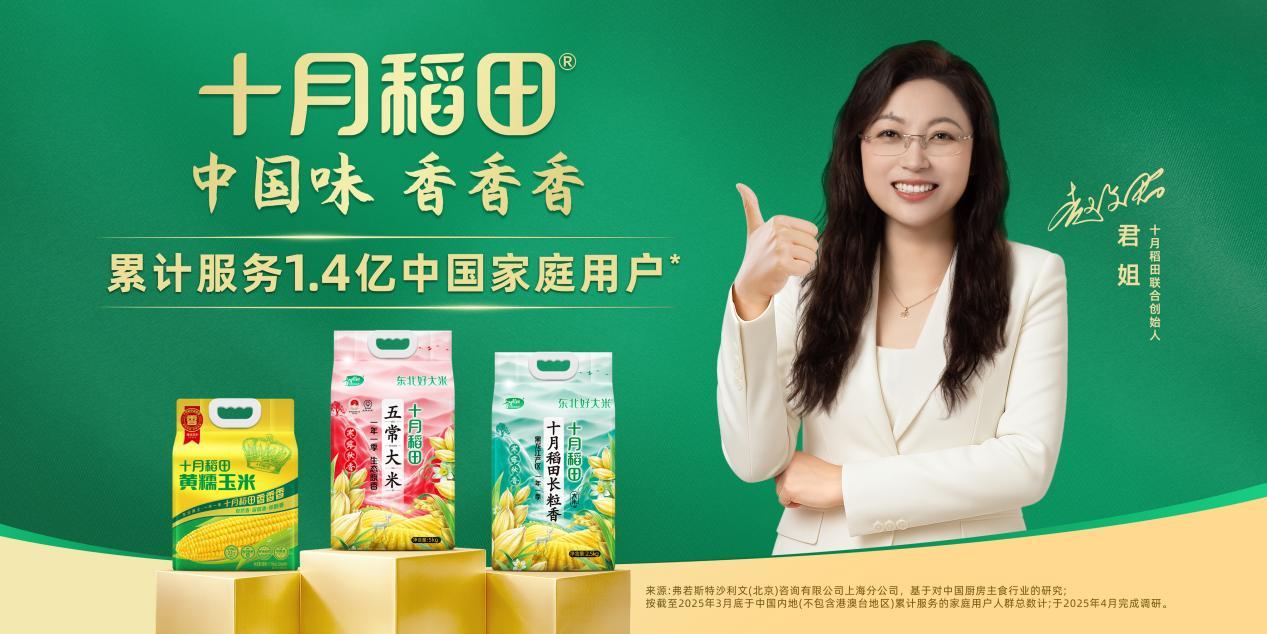 十月稻田已经连续多年保持行业领先地位,2025年再获弗若斯特沙利文三项认证:累计服务1.4亿中国家庭用户、连续六年东北大米中国销量领先、连续两年玉米品类中国销量领先,获得了消费者和行业的双重认可。