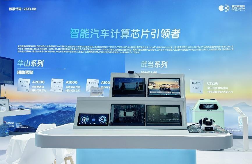 智能汽车计算芯片引领者黑芝麻智能连续第三年亮相盛会,展台前依次排列着多款专注于辅助驾驶、跨域计算的芯片产品,科技感满满。