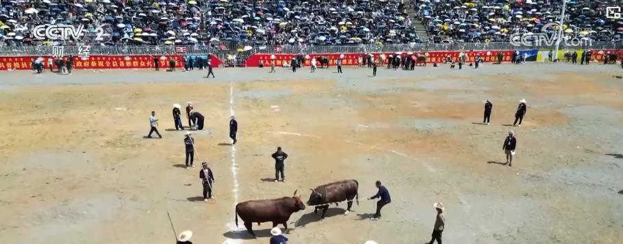 在位于四川凉山的普格县,传统点火仪式拉开了当地系列活动的序幕,传统歌舞千人朵洛荷惊艳四方。身着五彩彝绣盛装的姑娘们手持黄伞,随悠扬旋律翩跹起舞。斗牛比赛在普格县火把广场上演巅峰对决,强壮的公牛的每一次抵角、闪躲都引得现场一片欢呼。