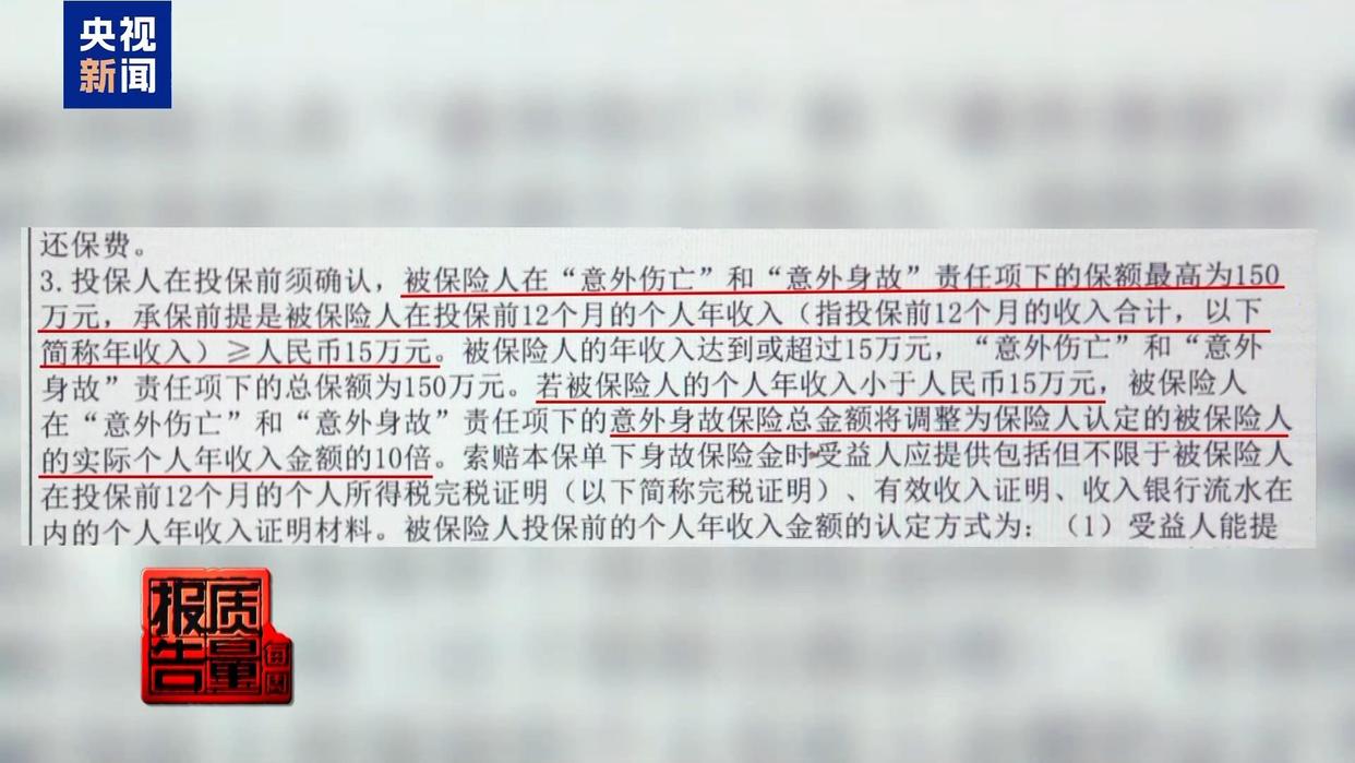 记者注意到,一审法院裁决依据的是保单的特别约定一栏的内容:“被保险人在‘意外伤亡’和‘意外身故’责任项下的保额最高为150万元”,承保前提是被保险人在投保前12个月的年收入≥15万元;若被保险人的个人年收入小于15万元,保险总金额调整为被保险人年收入金额的10倍。