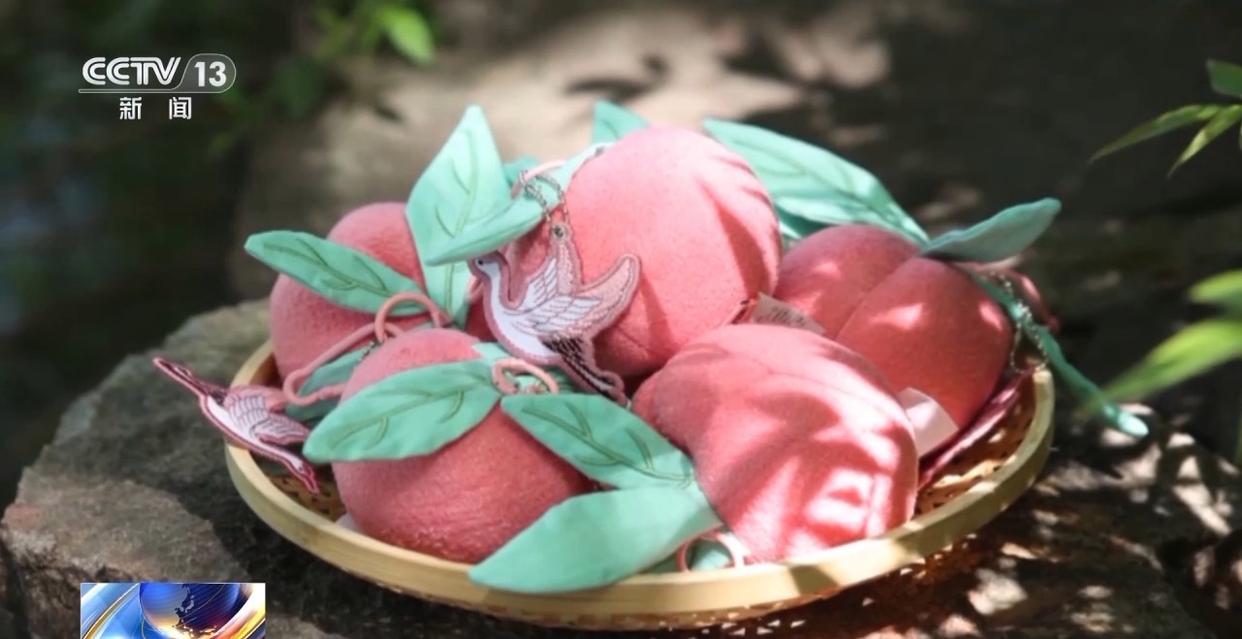 苏州博物馆文化创意部工作人员顾名思义:模拟了水蜜桃表面毛茸茸的质感,所以这套挂件又可爱又好揉捏,所以是一个非常适合夏天的毛绒挂件。