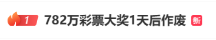 截至兑奖截止日前一天,中奖者仍未现身,引发关注。8月6日,话题“782万彩票大奖1天后作废”登上微博热搜榜首。