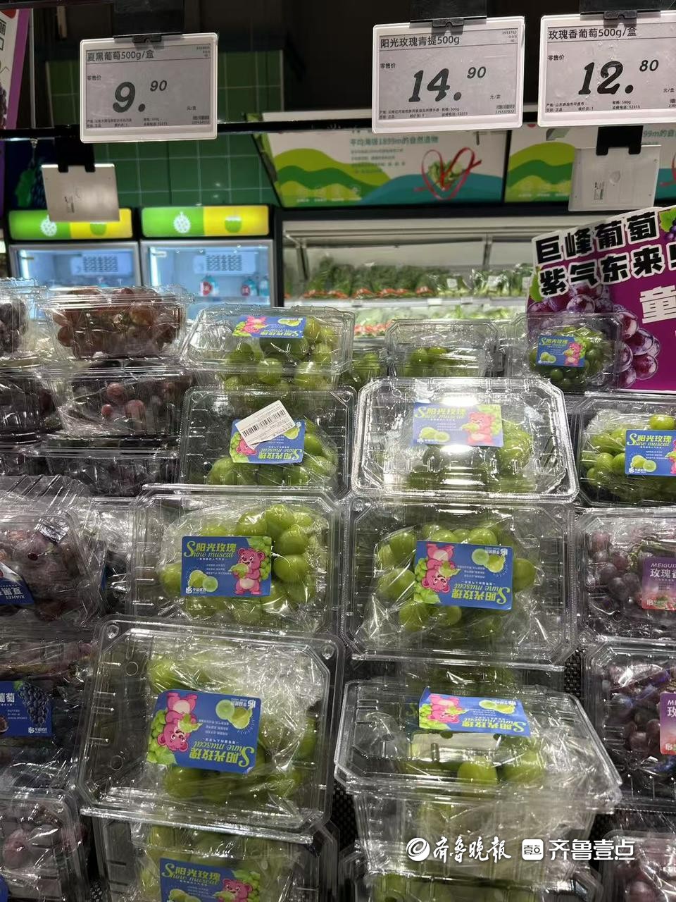 在济南市大润发(历下)店超市,阳光玫瑰青提的价格为14.9元/斤,在山大南路一水果店,阳光玫瑰的价格为5元/斤。相较于超市,济南七里堡综合批发市场的阳光玫瑰价格显得很“亲民”。“质量比较好的批发价7元/斤,次一点的阳光玫瑰5元/斤。”一商家说,“和巨峰葡萄相比,阳光玫瑰的产量大,管理起来轻松,葡萄种植户纷纷转向阳光玫瑰。”