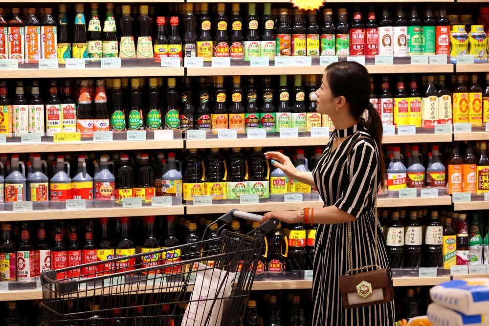 7月9日,消费者在山东省枣庄市一家超市选购调味品。新华社发(孙中喆摄)