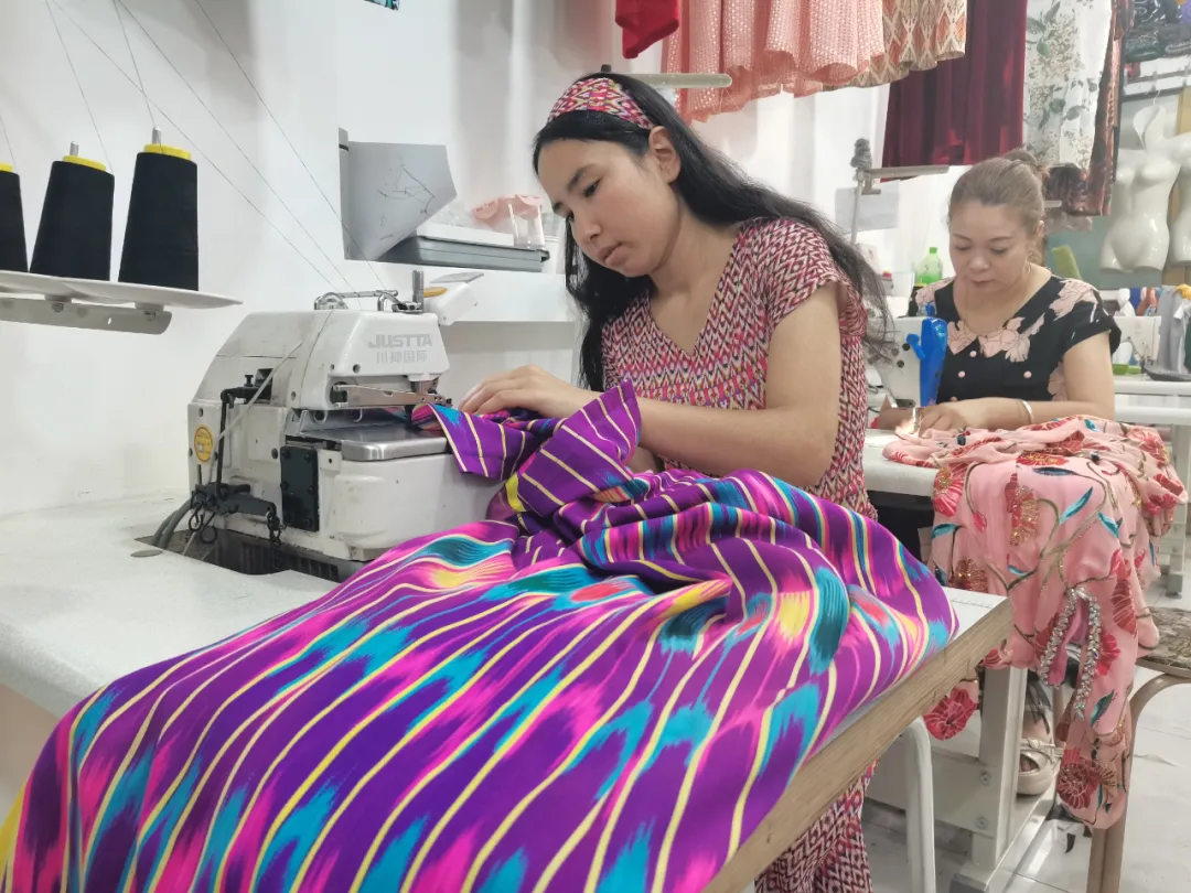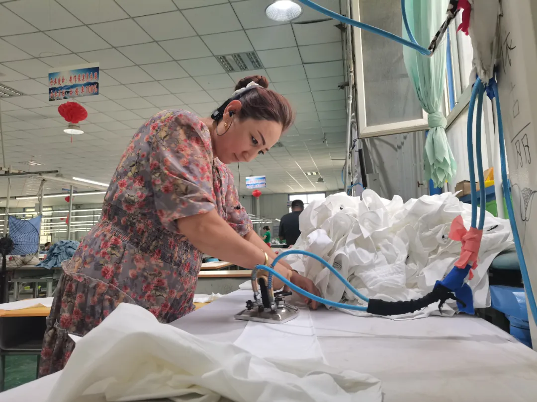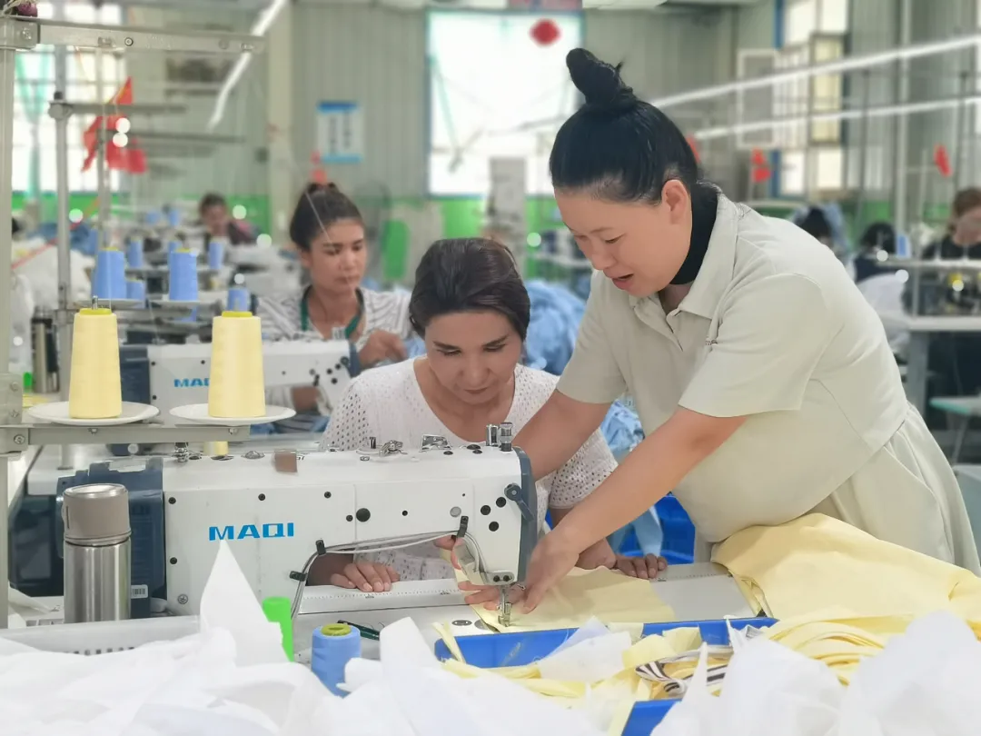 该企业生产经理说:“我们厂从2022年建厂以来,每年的产值达到两千多万元,提供三百多个就业岗位。目前我们的服装出口欧美、东南亚、南非、中亚三十多个国家。”