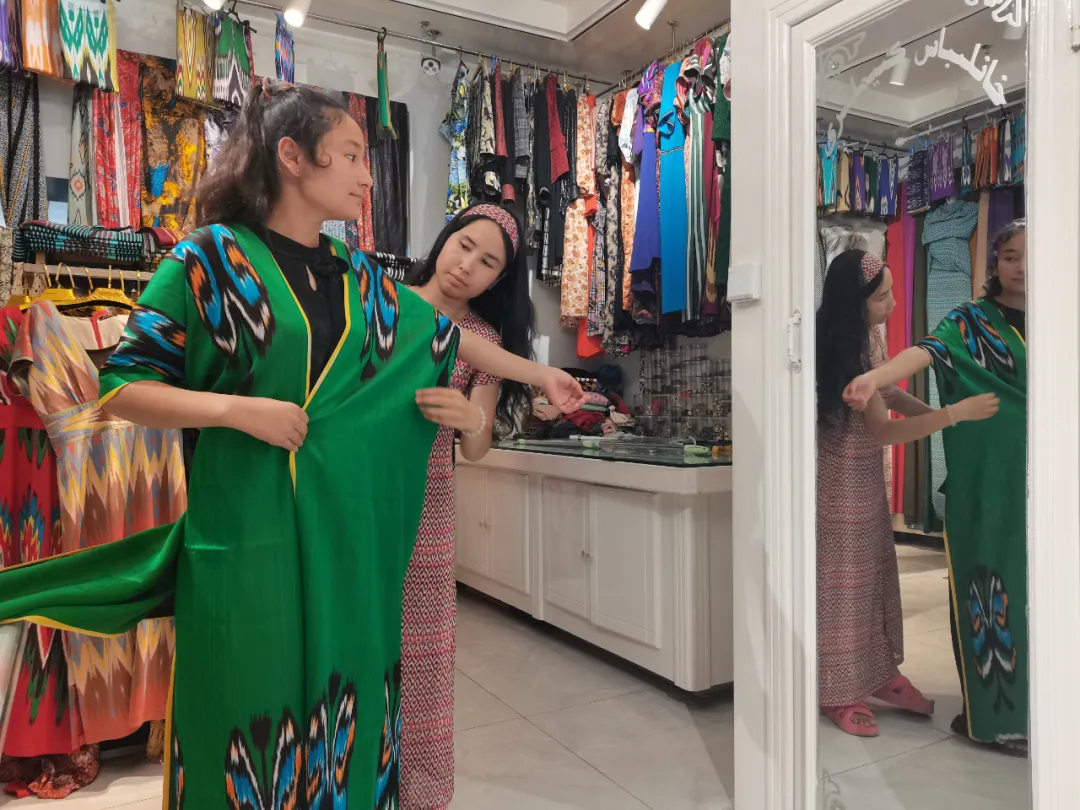 艾德莱斯绸承载着丝绸之路的辉煌记忆,见证了古代商贸往来与文化交流的繁荣景象,成为丝绸之路文化的重要象征。直至今日,艾德莱斯绸依然深受当地群众的喜爱。