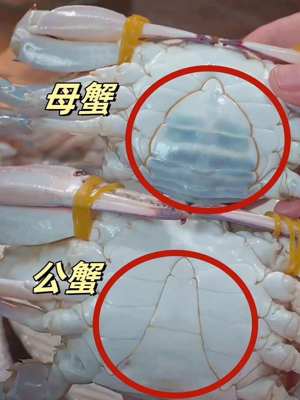 尖脐为公蟹,膏少肉多;圆脐为母蟹,黄多。
