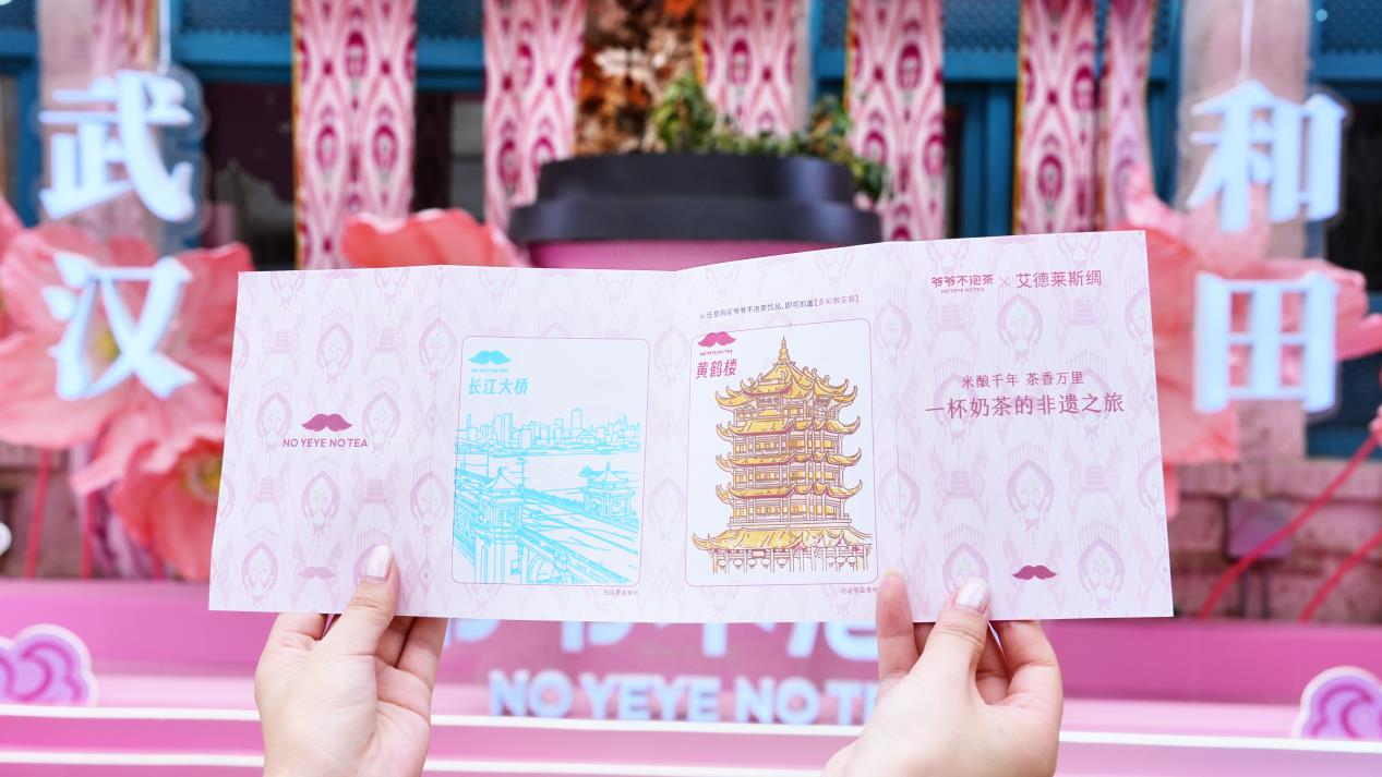 受文化和旅游部非物质文化遗产司邀请,爷爷不泡茶携以湖北非遗孝感米酿为核心原料的热销奶茶“荔枝冰酿”参展,将湖北非遗装进奶茶杯里,沿着丝绸之路带到新疆。在主会场约特干古城景区,游客们不仅可以品尝到独具风味的荔枝冰酿,还能感受到爷爷不泡茶与新疆特色的国家级非物质文化遗产艾德莱斯绸、湖北省非物质文化遗产武汉剪纸联动的特色文创周边,体验非遗突破地域局限,在融合中焕发新意的独特创意。