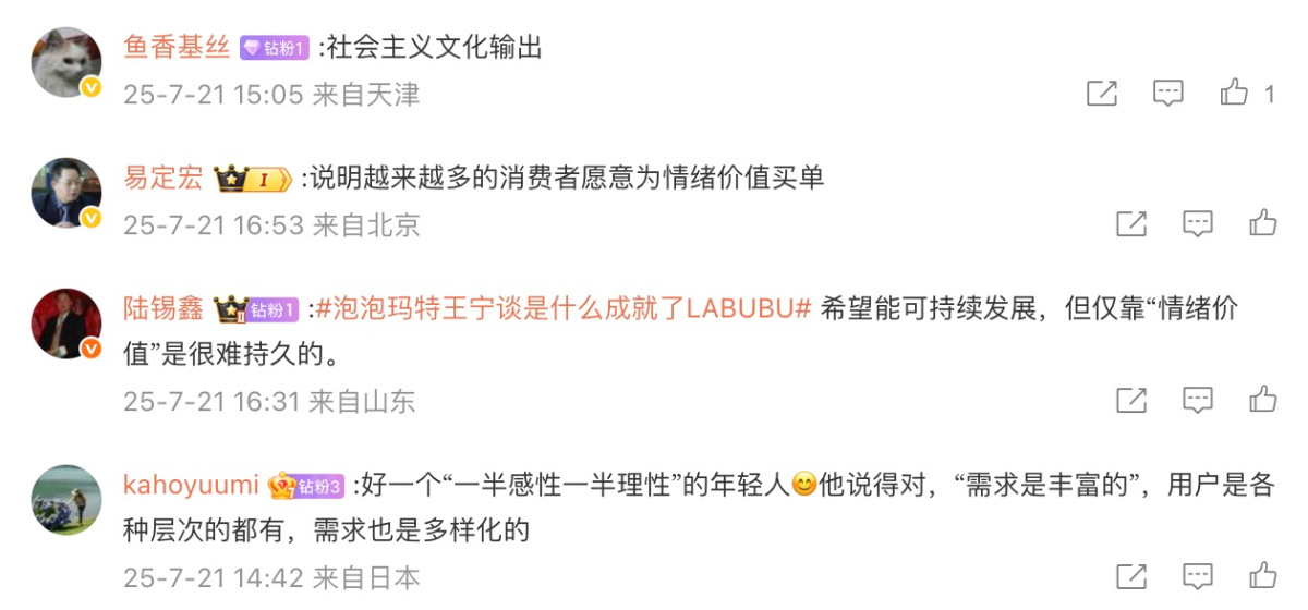 王宁则是一位“文化符号的翻译者”。他敏锐地捕捉到“新时代的中国文化,是世界级的文化”,依托中国强大的制造能力,将东方美学和情感需求融入潮玩。LABUBU等IP的成功出海,不再是简单的商品出口,而是“中国文化软实力和现代工业体系结合”的出口。