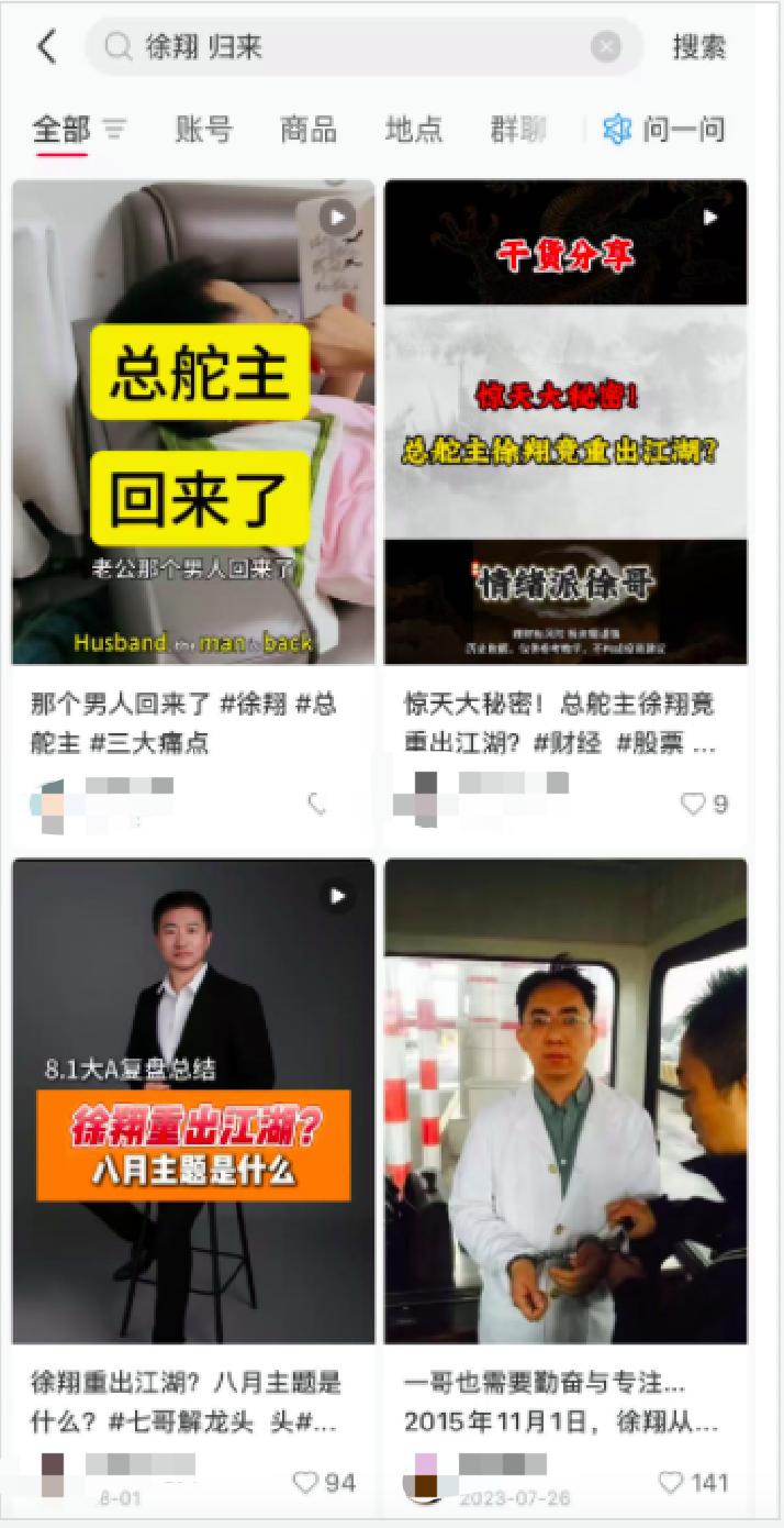 8月21日,红星资本局从知情人士处了解到,视频号平台方已对这些“虚假股神”的内容做出处理。抖音相关负责人也回复红星资本局称,已回查处置53个仿冒“徐翔”的账号,并新增拦截策略。同时,对借“徐翔归来”蹭热炒作、违规荐股的内容予以处置,对违规账号处置禁言。