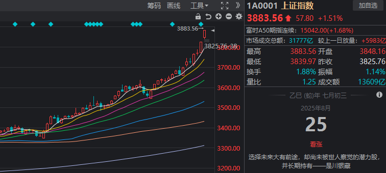 8月25日,市场全天震荡走高,沪指逼近3900点,创业板指领涨。截至收盘,沪指涨1.51%,深成指涨2.26%,创业板指涨3%。