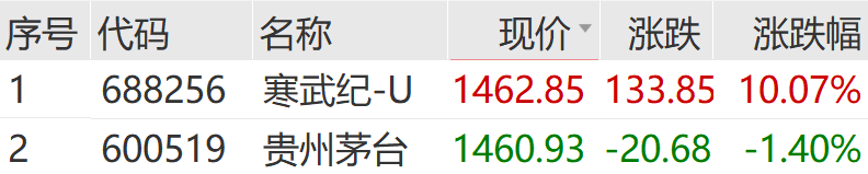 8月27日,寒武纪高开近4%,午后持续拉升。截至发稿,寒武纪股价达到1462.85元/股,超越贵州茅台的1460.93元/股,成为A股市场“单价”最贵的股票。