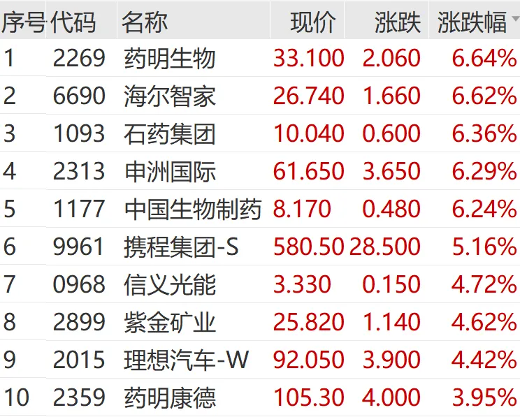 港股上午冲高回落,截至午间收盘,恒生指数涨0.63%,恒生科技指数涨0.56%,恒生国企指数涨0.68%。港股医药板块走高,药明生物、石药集团、中国生物制药等领涨恒指成份股。