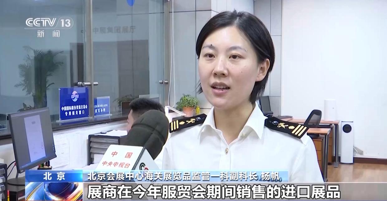 北京会展中心海关展览品监管一科副科长 杨帆:展商在今年服贸会展期内销售的进口展品,按照政策规定的数量或金额上限,依旧免征进口关税、进口环节增值税和消费税,企业仍可享受“三税全免”的政策红利。