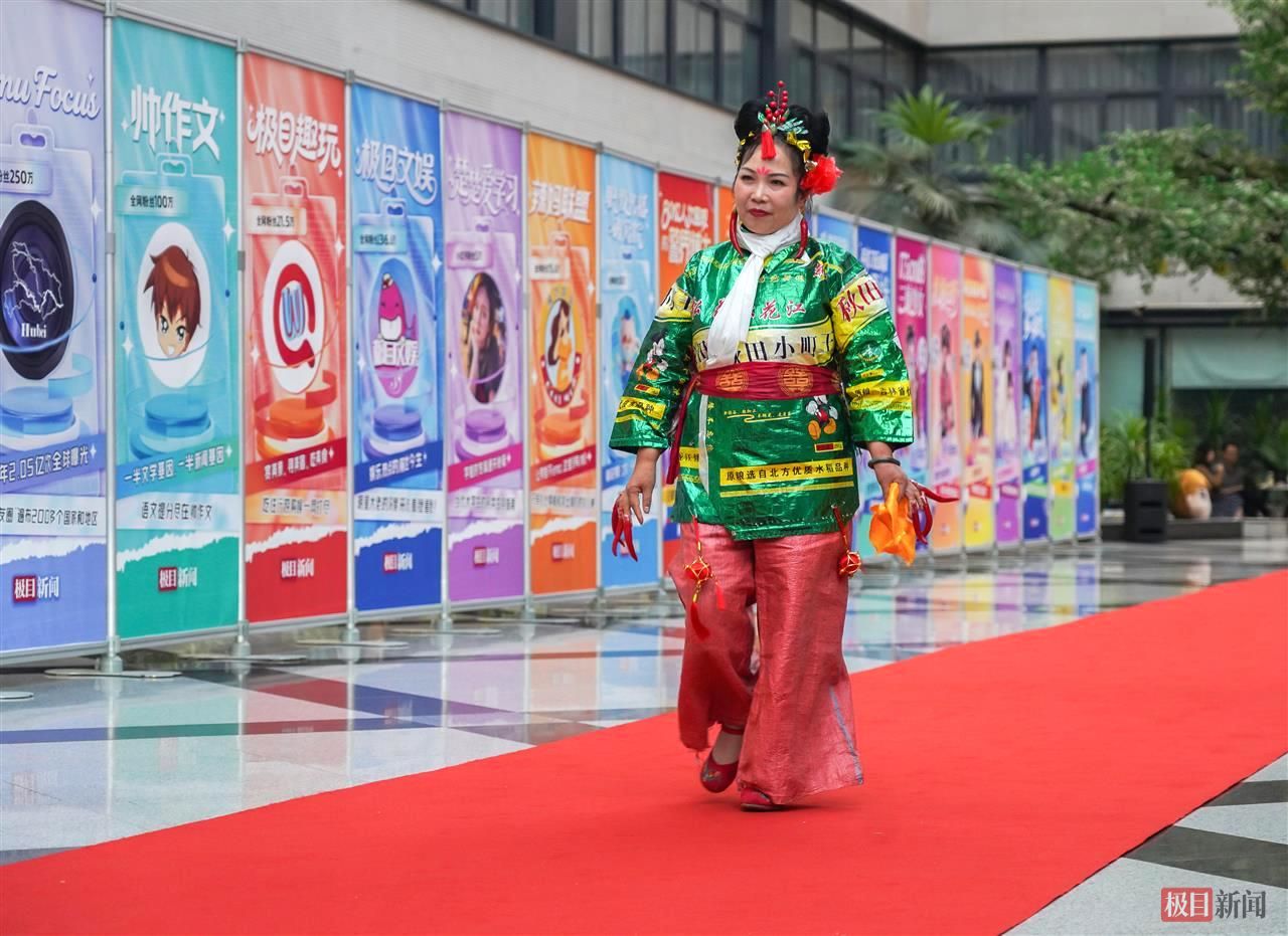 本土达人@卖菜云姐 的登场则充满烟火气,身着朴素围裙的她刚走上红毯,就被现场观众的欢呼声包围。“灵感都是从菜场来的,昨天看到青椒新鲜,就想着用青椒当道具拍变装。” 她坦言主业始终是卖菜,“粉丝来菜场找我买菜,还会教我拍视频,这种亲切感比啥都珍贵。”