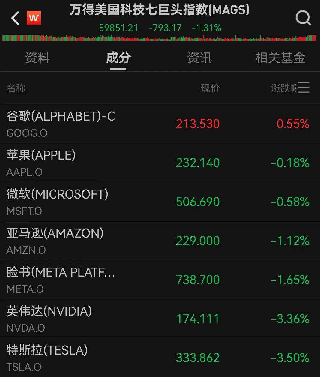 大型科技股多数下跌,特斯拉跌3.5%,英伟达跌3.3%,市值一夜蒸发1456亿美元(约合人民币10382亿元)。苹果跌0.18%,微软跌0.58%,亚马逊跌1.1%,谷歌逆势上涨0.6%。
