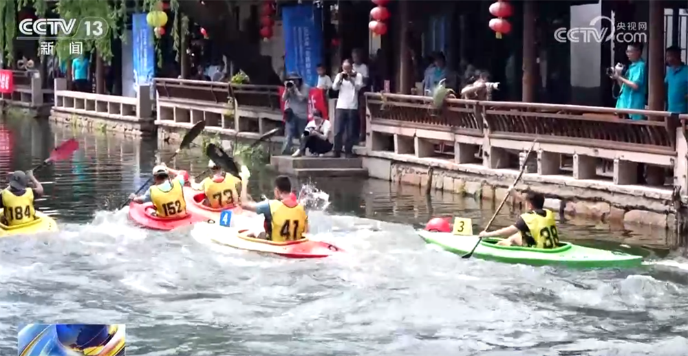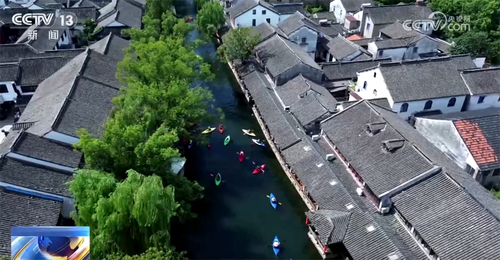 此外,苏州的各类水上活动也接连上演。这是前不久在周庄古镇进行的一场皮划艇赛事,色彩鲜艳的皮划艇穿梭在蜿蜒水道和古朴石桥之间,水上运动与江南古镇擦出别样火花。