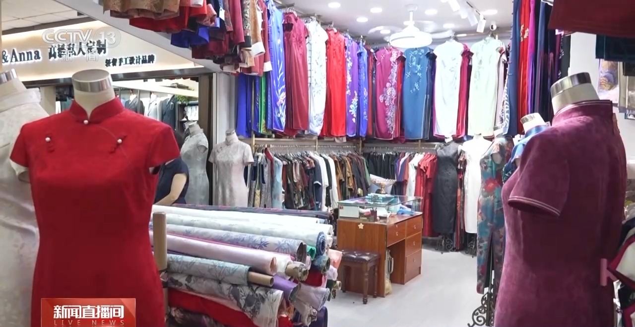 而在另一家专门定制中式旗袍的店铺,不少外人顾客正在量体定制。