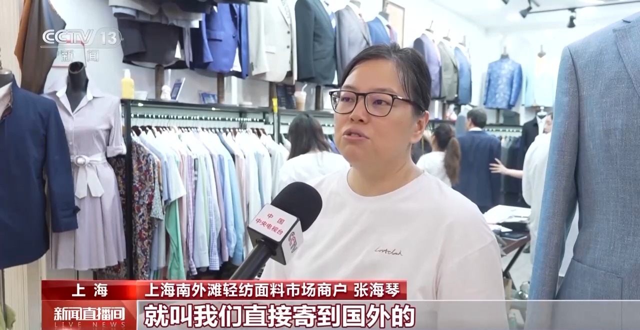上海南外滩轻纺面料市场商户 张海琴:外国人的回头客,因为我们都有联系方式,他们就会一直在加购,人不来了,就叫我们直接寄到国外。