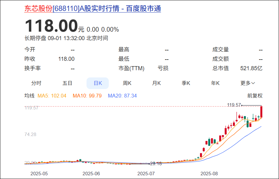 由于近期涨幅过大,8月的最后一个交易日,东芯股份公告停牌。