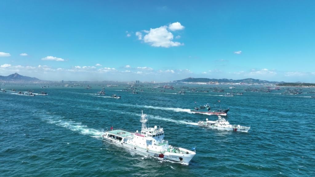 威海海事局联合威海海警局、山东省海洋与渔业执法监察局第二支队等单位启动“2025护航开渔行动”。
