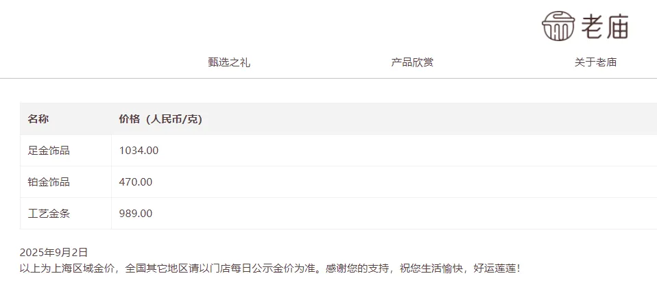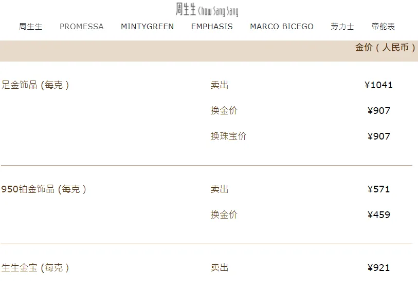 2日,记者查询发现,国内金饰价格也有较大幅度增长,周生生为1041元/克,较前日上涨16元,老庙黄金为1034元,单日上涨11元。