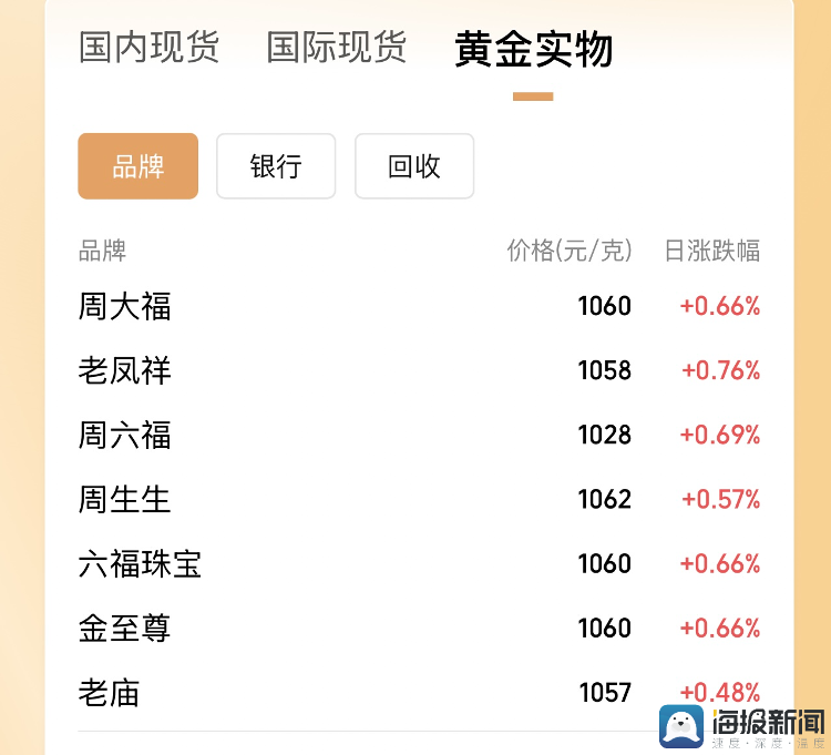 9月4日,国内黄金首饰品牌金价继续全部上涨。