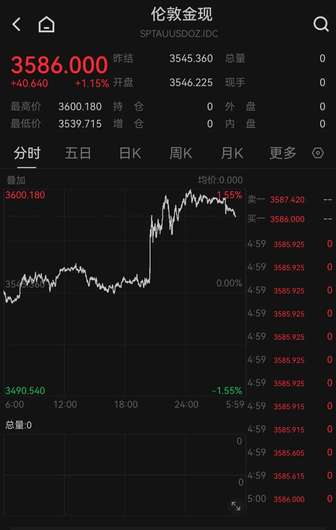 6日,国际金价走高。现货黄金涨1.15%,报3586美元/盎司,再创新高,盘中一度突破3600美元/盎司,这是继3日突破3545美元/盎司后,续创新高;COMEX黄金期货涨0.92%,报3639.8美元/盎司。