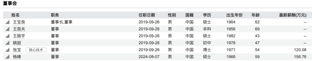2024年年报显示,张宝年薪120.08万元,持股达1656万股。
