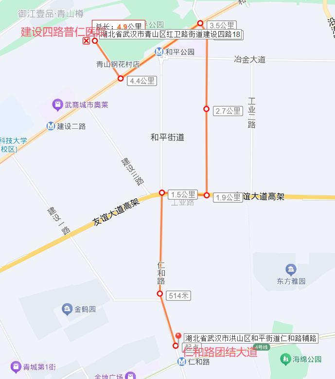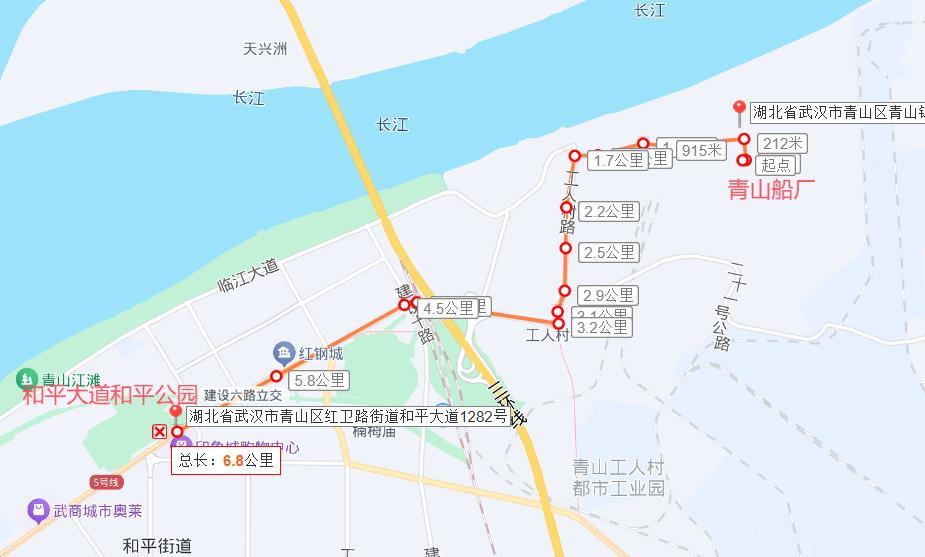 微公交17路:首末站由青山船厂至和平大道和平公园,线路走向:青山船厂始发,经长青路、工人村路、和平大道至和平大道和平公园,单程线长6.8公里。