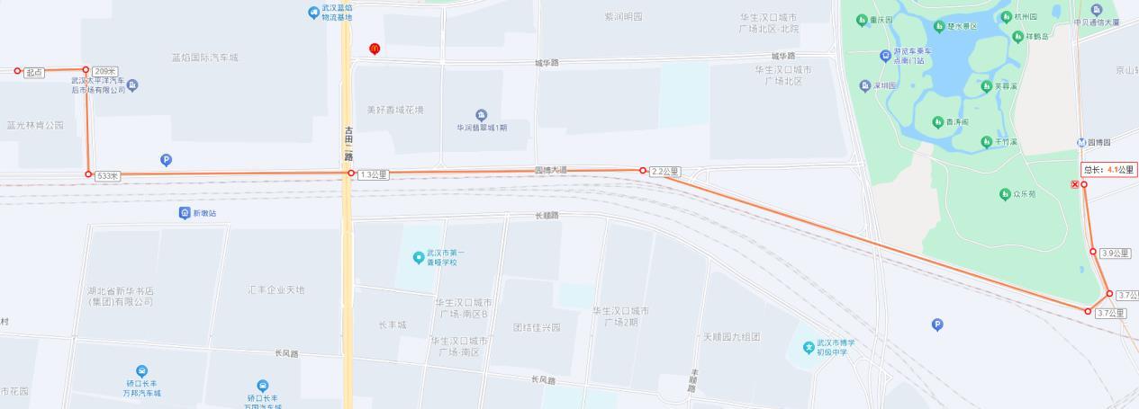 微公交12路:首末站由杉杉奥特莱斯5号门至蔷薇路永旺梦乐城,线路走向:杉杉奥特莱斯5号门、紫藤路、四新南路、芳草六街、芳草五街、芳草路、四新南路、东风大道、太子湖北路、蔷薇路、蔷薇路永旺梦乐城,单程线长11.7公里。