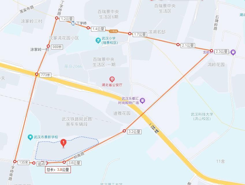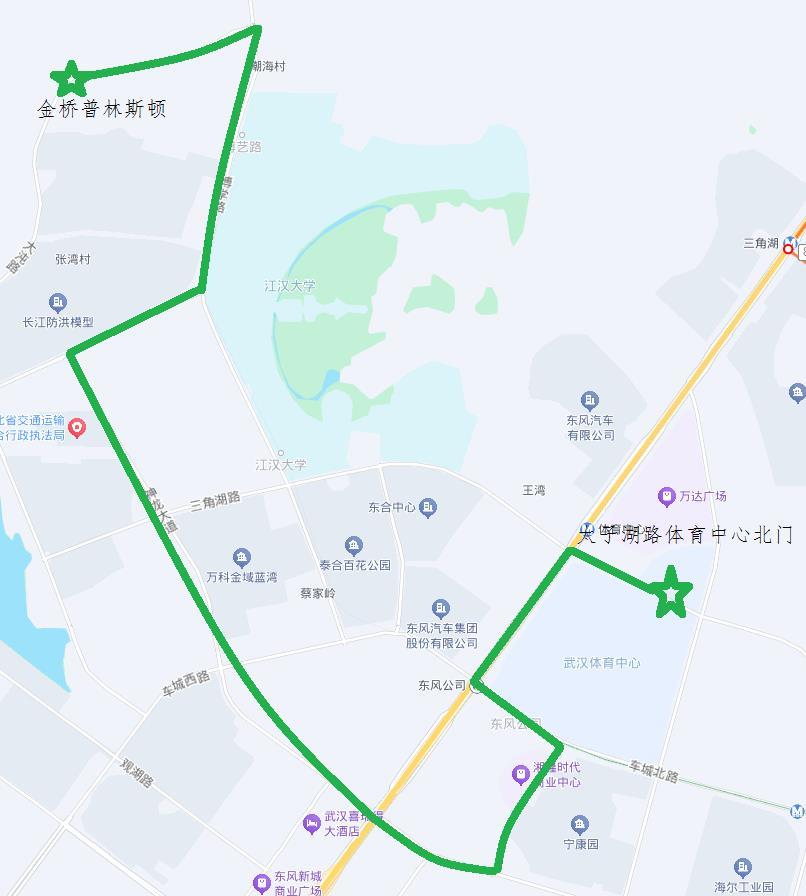 微公交11路:首末站由金桥普林斯顿至太子湖路体育中心北门。线路走向:金桥普林斯顿、麻湖路、博学路、碧湖路、神龙大道、宁康路、车城北路、东风大道、太子湖路、太子湖路体育中心北门,单程线长7.8公里。