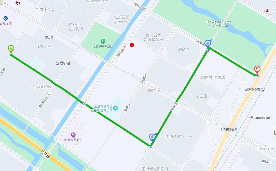 微公交10路:首末站由广电兰亭时代至国博地铁站,线路走向:梅林六街、鄂渚路、文举街、国博中心南地铁站,单程线长3公里。