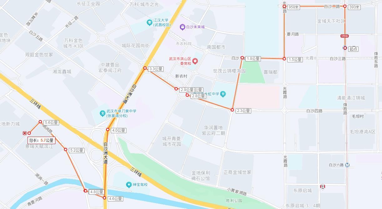 微公交8路:首末站由茂兴路地铁蔡甸广场站至长江大学,线路走向:蔡甸大街、茂兴路、通城大道、长江大学,单程线长:5.5公里。