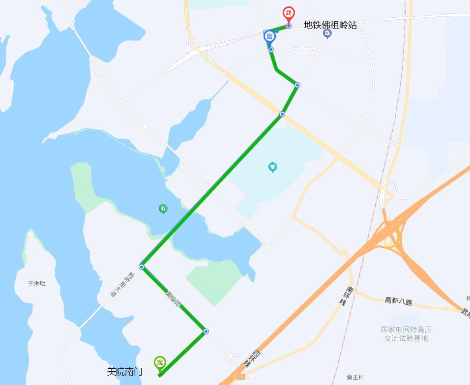 微公交14路:首末站由栗庙南路美院南门至高新六路佛祖岭站,线路走向:栗庙路、杨桥湖大道、康魅路、高新六路,单程线长7.5公里。