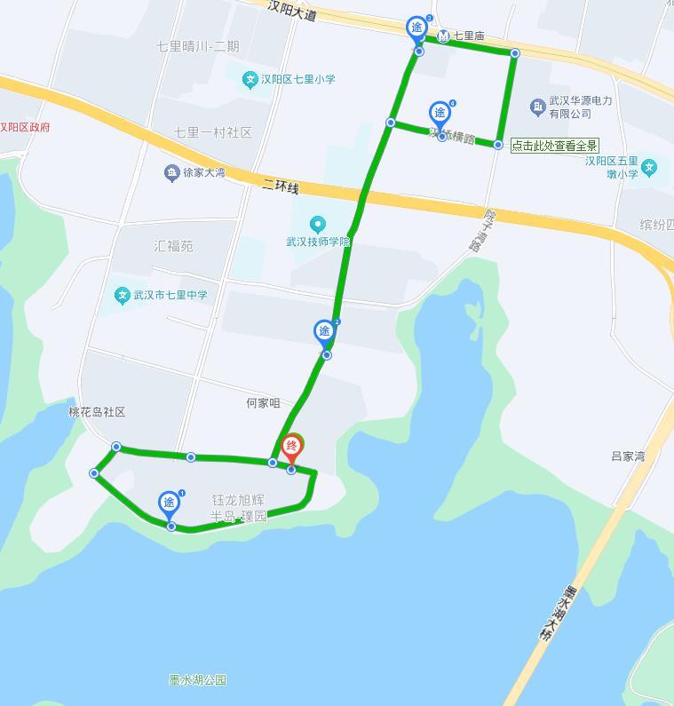微公交9路:首末站由何家嘴路汉桥路至桃花岛公交场站,线路走向:何家嘴路、汉桥路、汉阳大道、五麟路、汉桥横路、汉桥路、桃花岛路,单程线长6公里。