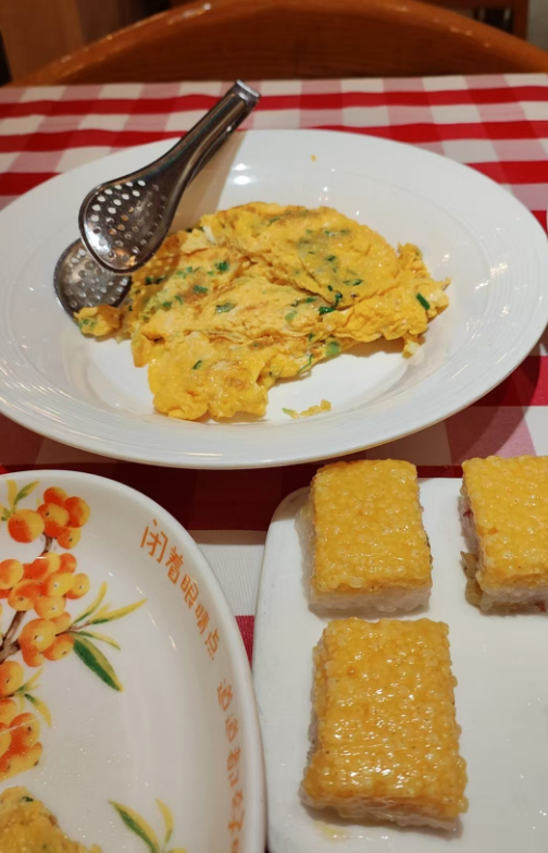 记者随后点了菜单中的,西贝面筋、黄米凉糕、胡麻油沙葱炒鸡蛋三道菜,共计91元。在下单后大概15分钟,三道菜上齐;其中,黄米凉糕和西贝面筋最先上桌,唯一的热菜胡麻油沙葱炒鸡蛋最后上桌。
