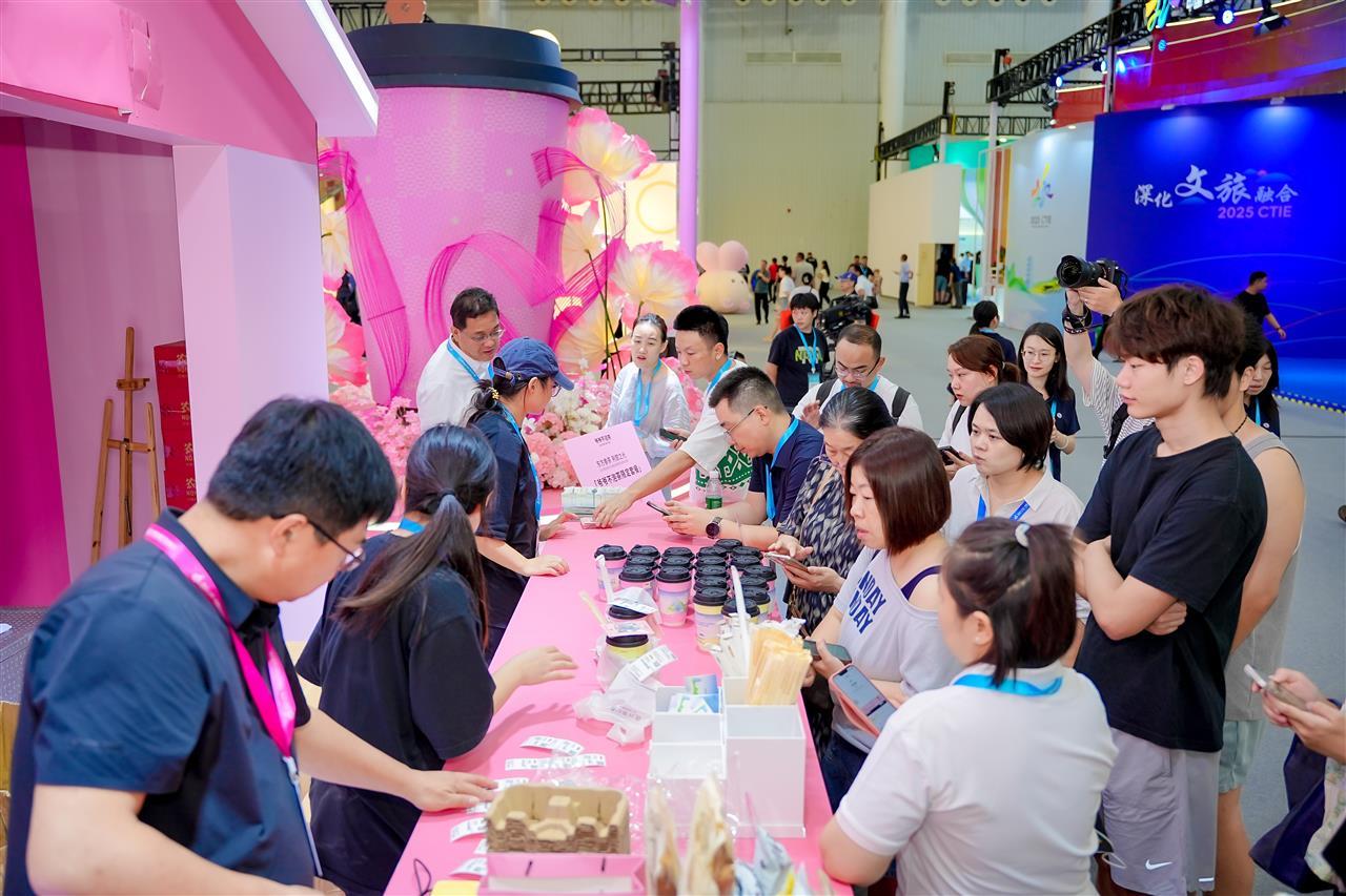奶茶出品区最火爆时超过30人在排队,喝爷爷不泡茶逛文旅博览会,成为现场高频出现的潮流选择。