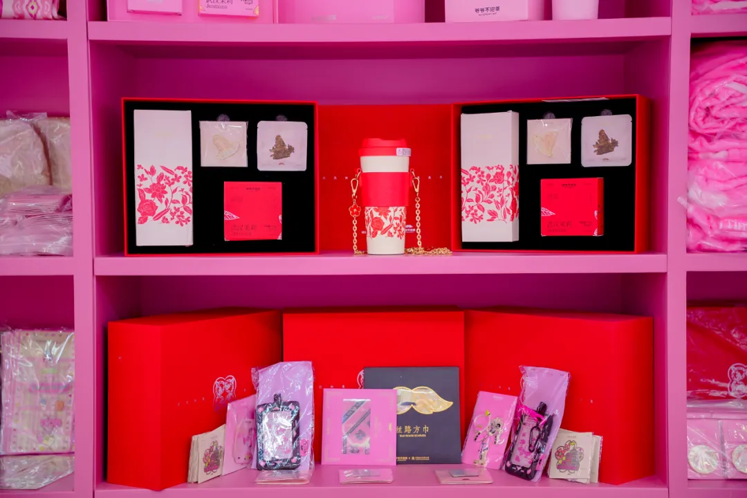 同时,爷爷不泡茶与新疆特色的国家级非物质文化遗产艾德莱斯绸、湖北省非物质文化遗产武汉剪纸联动,开发了帆布包、团扇、冰箱贴等展会限定文创周边,让传统文化在融合中焕发新意。