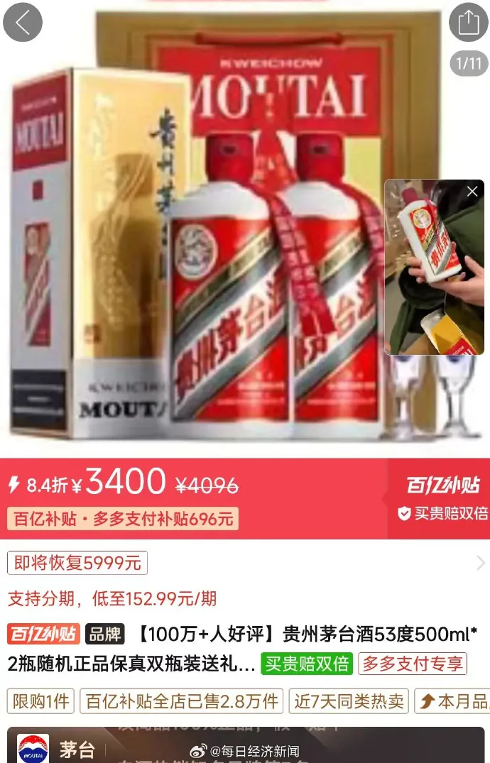公斤茅台(53度/1L)原箱报3300元/瓶,亦创出了年内新低,较年初平台上线时的3700元/瓶,跌幅达到了18.92%。