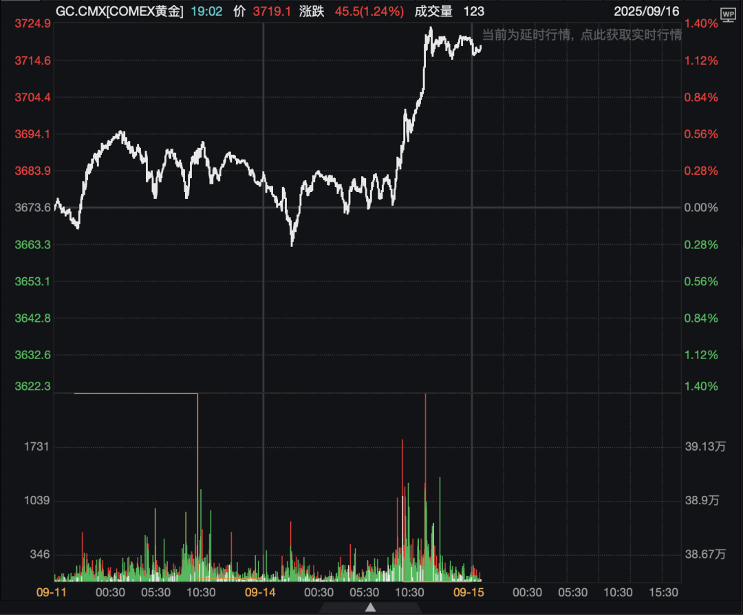 COMEX黄金年内累计上涨超40%,近期突破区间震荡行情,再创新高。截至发稿,COMEX黄金已突破3700美元/盎司。如前文所述,市场预料美联储将在本周宣布降息。