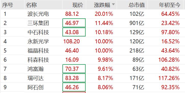 波长光电20cm涨停,永新光学、福晶科技、科森科技纷纷涨停。