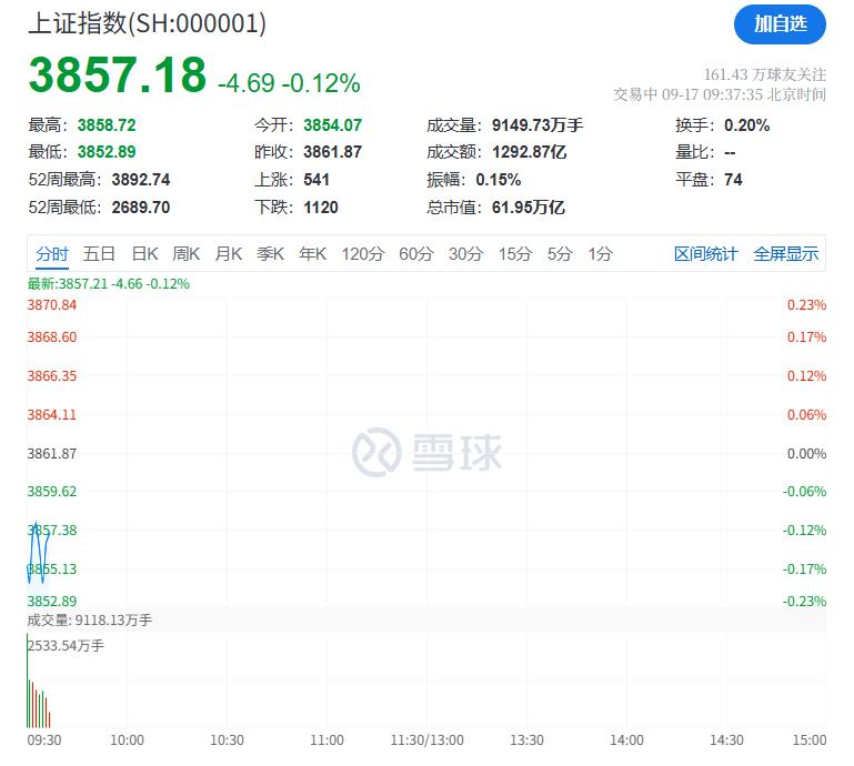 9月17日早盘,A股主要股指集体低开后震荡上扬。