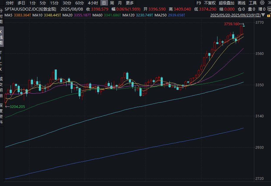 国际金价方面,9月23日,伦敦现货黄金、COMEX黄金双双上涨。截至发稿,伦敦现货黄金首次站上3750美元关口,盘中最高涨至3759.16美元/盎司;COMEX黄金期货站上3790美元关口,最高涨至3795.1美元/盎司。