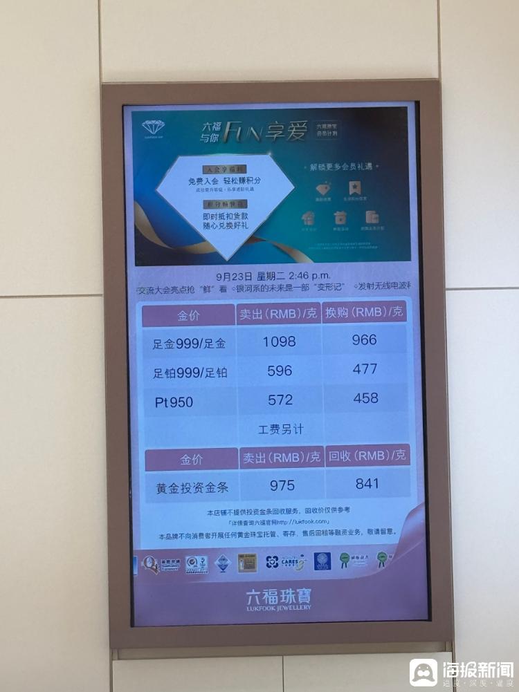 9月22-23日,海报新闻记者走访济南市多家商场黄金区域,了解“一口价黄金”饰品的涨价情况。